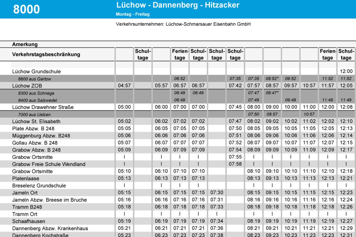 In enger Zusammenarbeit mit der VNO als Auftraggeber, dem Aufgabenträger sowie dem kommunalen Verkehrsunternehmen wurde fahrgast- und betriebsorientiert ein bestehender Netzentwurf fahrgast- und betriebsorientiert angepasst und damit die Grundlage für einen stabilen Taktfahrplan geschaffen. Bei der anschließenden Fahr- und Umlaufplanung konnte ein, im Vergleich zum Bestand, wesentlich attraktiveres Angebot geschaffen werden, ohne den Fahrzeugbedarf zu erhöhen. Zugleich wurde die Anzahl der per Taxi beförderten Schüler um 90% reduziert. Auf der Hauptlinie zwischen den wichtigsten Orten des Landkreises gibt es künftig ganztägig ein stündliches Angebot, im Taktknoten Lüchow wurden die wichtigsten Umsteigerelationen verknüpft.