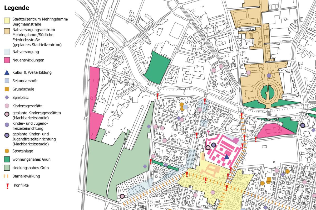 Erarbeitung eines Mobilitätskonzeptes für ein neues autoarmes Wohn- und Gewerbequartier und Prüfung von Maßnahmen zur Reduzierung der Umweltbelastungen und Aufwertung des öffentlichen Raums im angren-zenden Bestandsquartier.